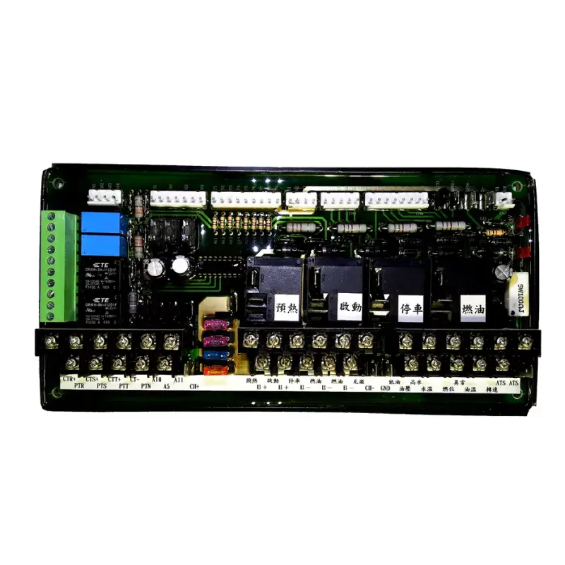 ■功能1. 直流啟動控制板 DC12/24V2. 預熱∕延遲啟動 18秒可調3. 啟動 18秒可調4. 停車 18秒可調5. 警報∕延遲停車 18秒可調6. 三次啟動保護7. 自動退啟動馬達保護8. 低油壓保護9. 高水溫保護10. 過盤車保護11. 可斷電停車及送電停車12. 手動∕自動選擇13. 低油壓開關(常閉/常開)14. 表面防潮處理